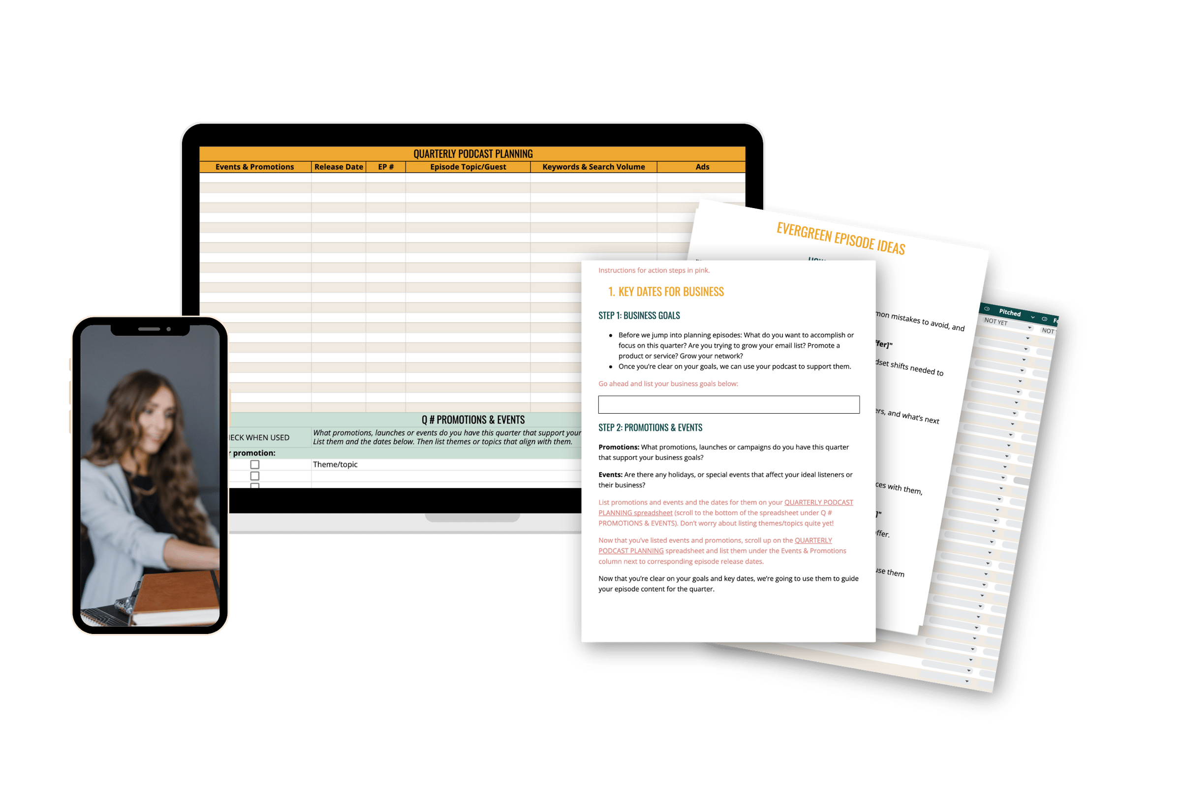 The Purposeful Podcast Planning Toolkit gives you everything you need to map out 90 days of strategic, client-attracting episodes.